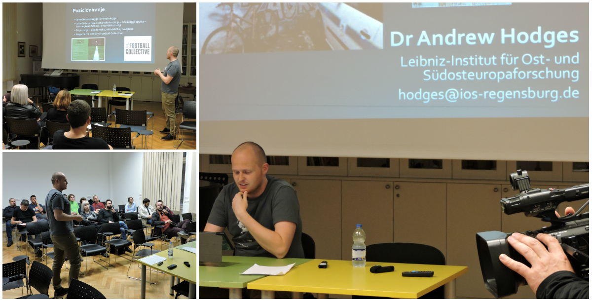 U predavanju je bilo riječi o spoznajama stečenim u etnografskom istraživanju antifašističke navijačke udruge Bijeli anđeli te o njihovoj usporedbi s Bad Blue Boysima, o čemu je Hodges nedavno objavio knjigu. Fokus je bio na Birmingham School of Cultural Studies (CCCS) i mogućoj primjeni njihove teorije na post-jugoslavenski i hrvatski kontekst. Bilo je riječi o temama poput navijačke autentičnosti, rodnih uloga, hegemonije i političke ideologije u navijačkoj supkulturi.