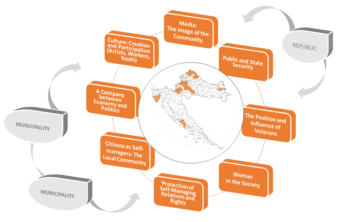 The 1970s and 1980s were a time in which the Yugoslav socialist system was fully formed, and during which self-management was implemented at all levels, in order for the state to wither away and to leave its powers to self-managed communities and organizations. The municipality was envisioned as a small community in which all the levels of the general socio-political organization were established, only on a microscale. The main academic aim of the project is to unravel the functioning of late socialism through an investigation of social relations and structures in selected municipalities. The project will focus on the role of citizens as self-managers in local communities, on the protection of self-management rights and social property, on public and state security, on local media in charge of creating an image of the community, on the position of organizations of associated labour between economics and politics, on cultural creativity and cultural politics in self-managed communities of interests, on the role of women and women's activism, and on the position and influence of veterans and their organization. A comparative analysis of case studies will shed light on the interplay of relationships that provide insights into issues such as power relations, social networking, the status of guaranteed rights and freedoms, as well as surveillance and compliance with different interests. The methodological approach will rely on social, cultural, political and economic history, the history of everyday life and the history of mentality. It will also establish connections between perspectives from below and perspective from above, as well as between horizontal and vertical communication, connecting microhistory with a macro-historical framework.