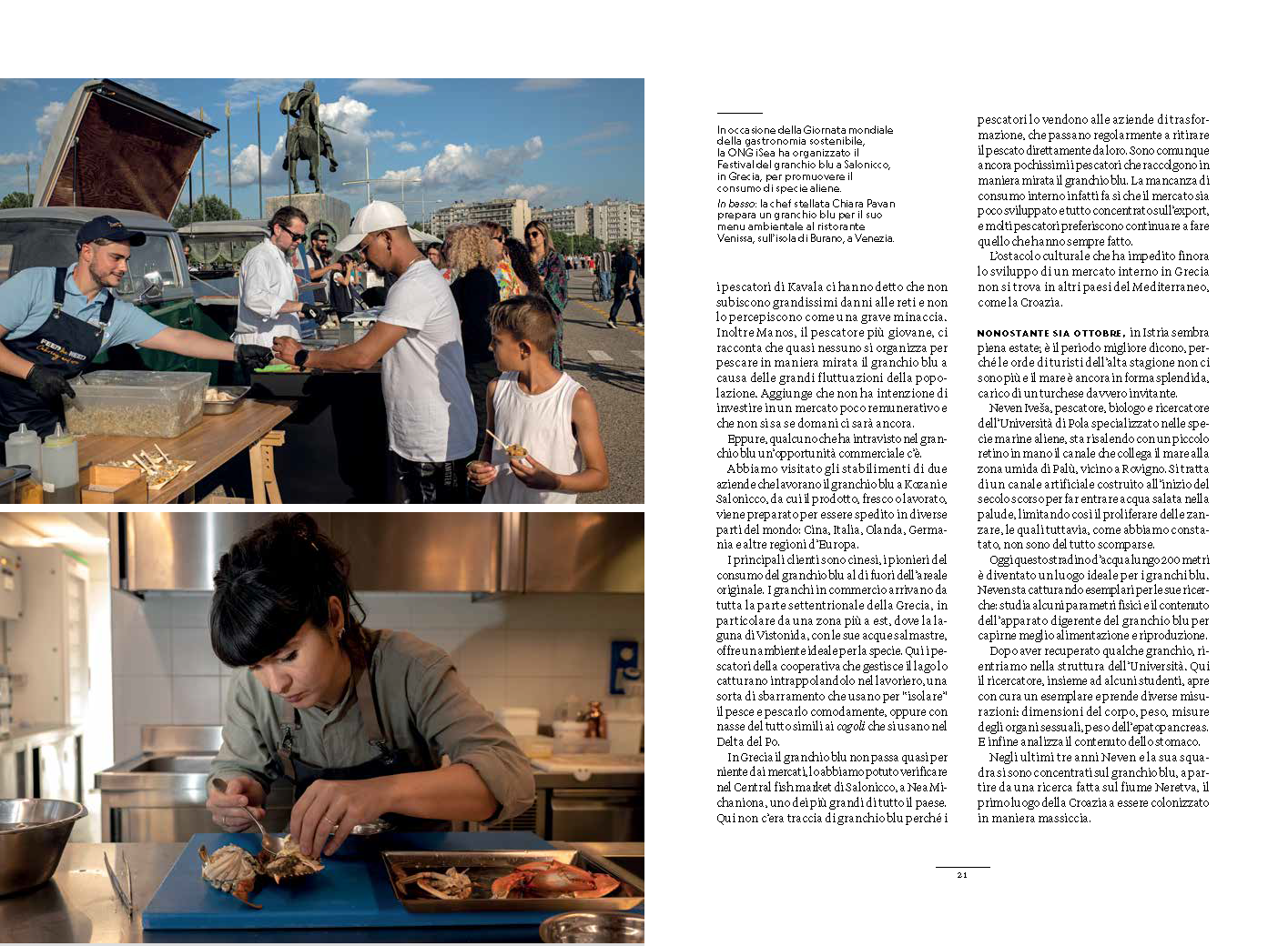 U reportaži naslova "L' alieno è tra noi" detaljno se opisuje problem invazije plavog raka duž obala Sredozemlja gdje su istaknuti socio-ekonomski problemi kao posljedica njegove invazije u nova staništa i mjere koje se mogu poduzeti kako bi se umanjio njegov utjecaj na naše ekosustave.