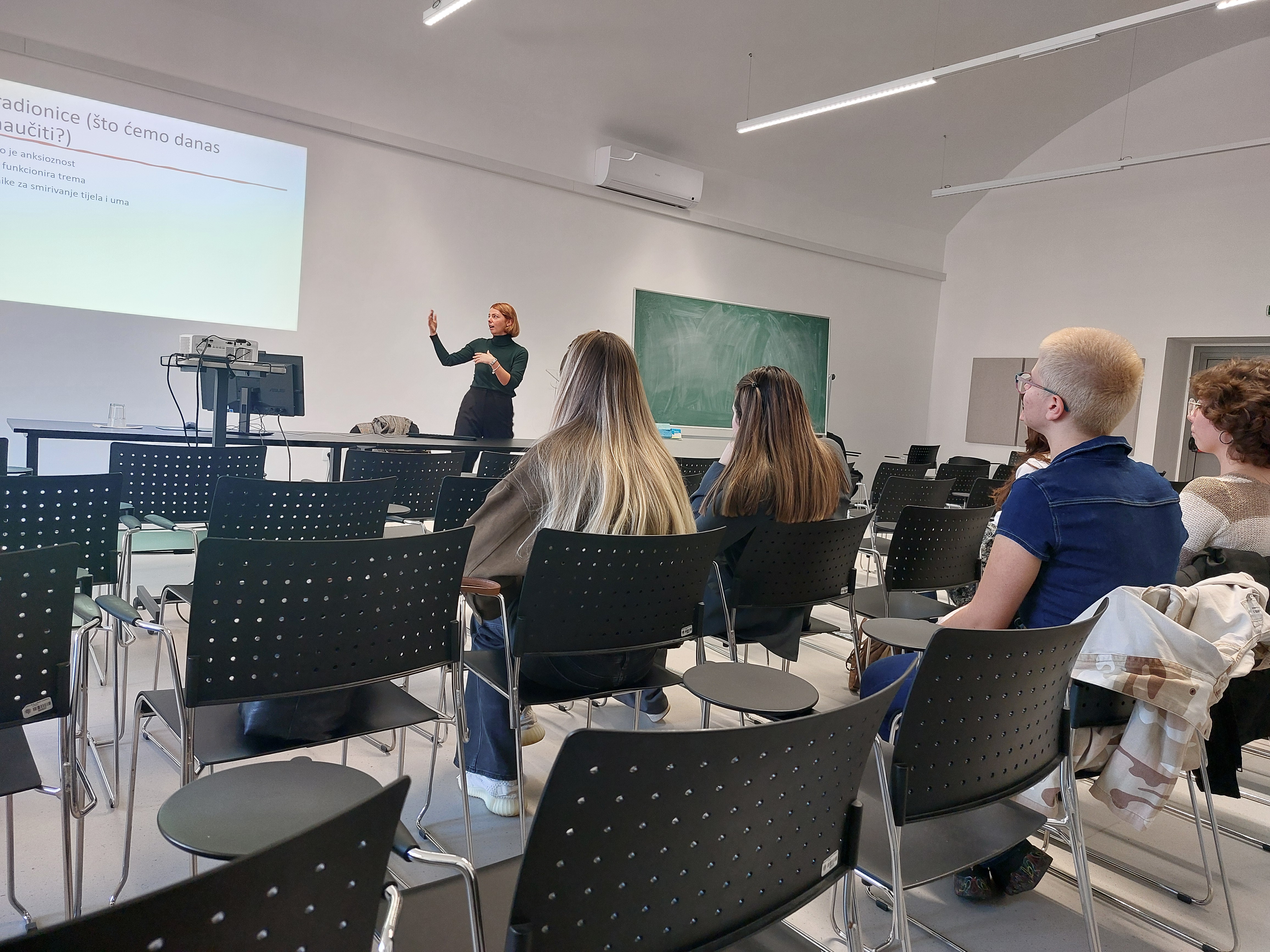 Cilj radionice bio je razviti razumijevanje socijalne anksioznosti te usvojiti praktične alate i strategije za umirivanje treme i jačanje samopouzdanja u različitim društvenim i profesionalnim situacijama. U opuštenoj atmosferi radionice sudionice su imale priliku saznati više o razlozima nastanka anksioznosti prije javnih nastupa te o tehnikama koje mogu pomoći u njezinu ublažavanju.
